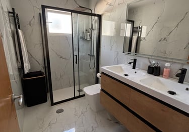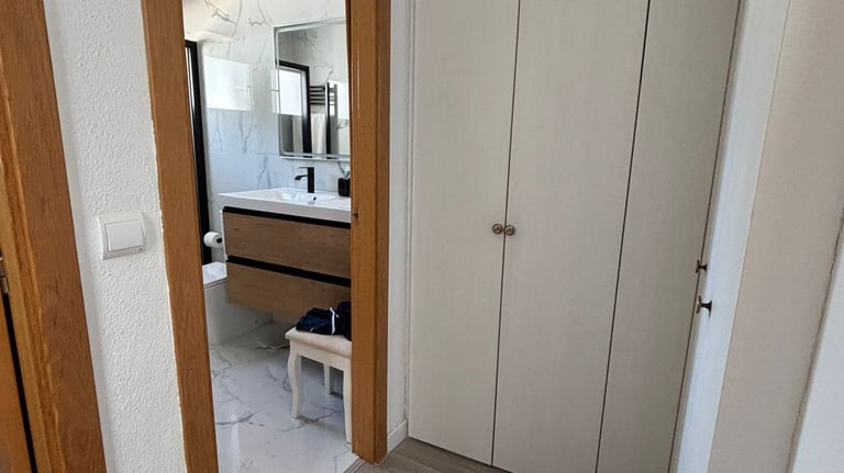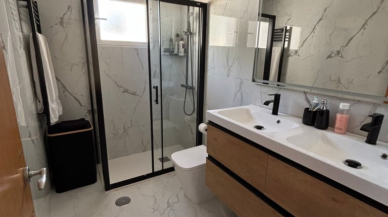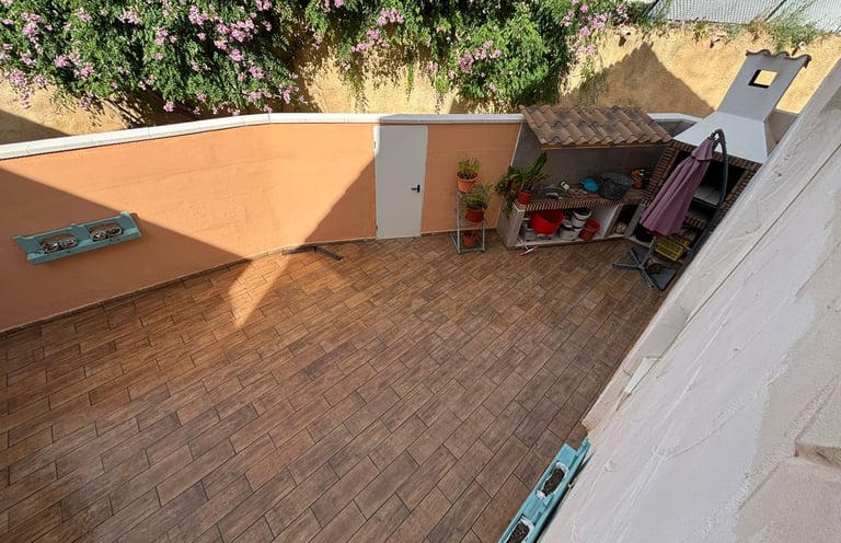 En la planta superior, el confort sigue siendo protagonista con dos amplias habitaciones dobles, una de ellas con baño en suite, y un baño completo adicional. Y para disfrutar del sol mediterráneo, esta planta cuenta con una espectacular terraza solárium privada, tu propio oasis para relajarte y desconectar.